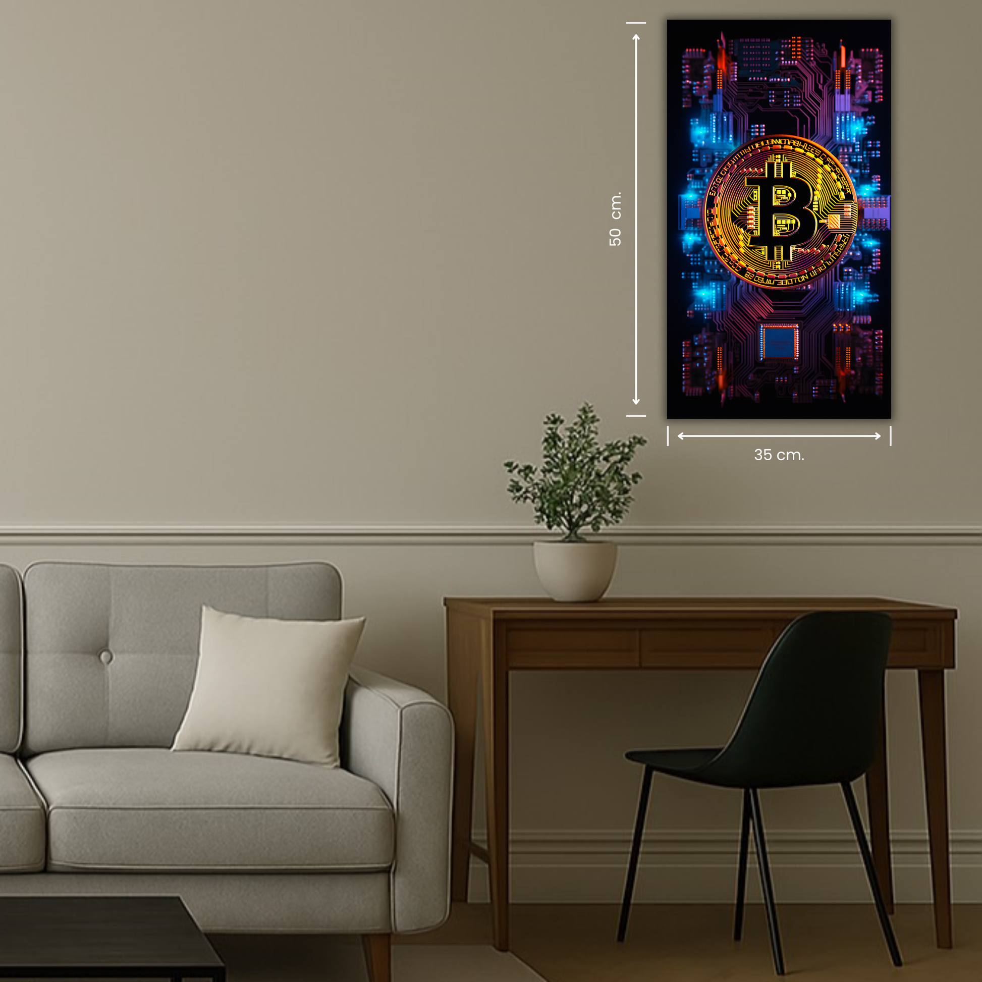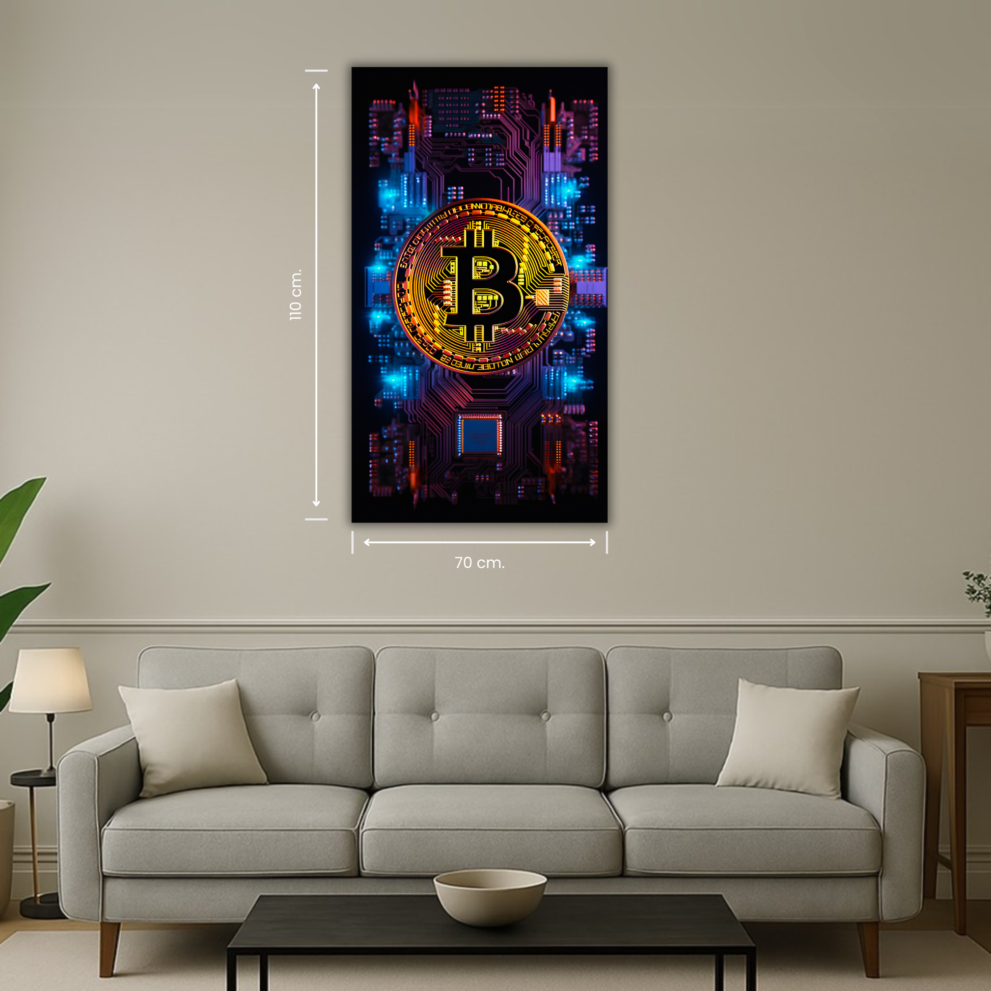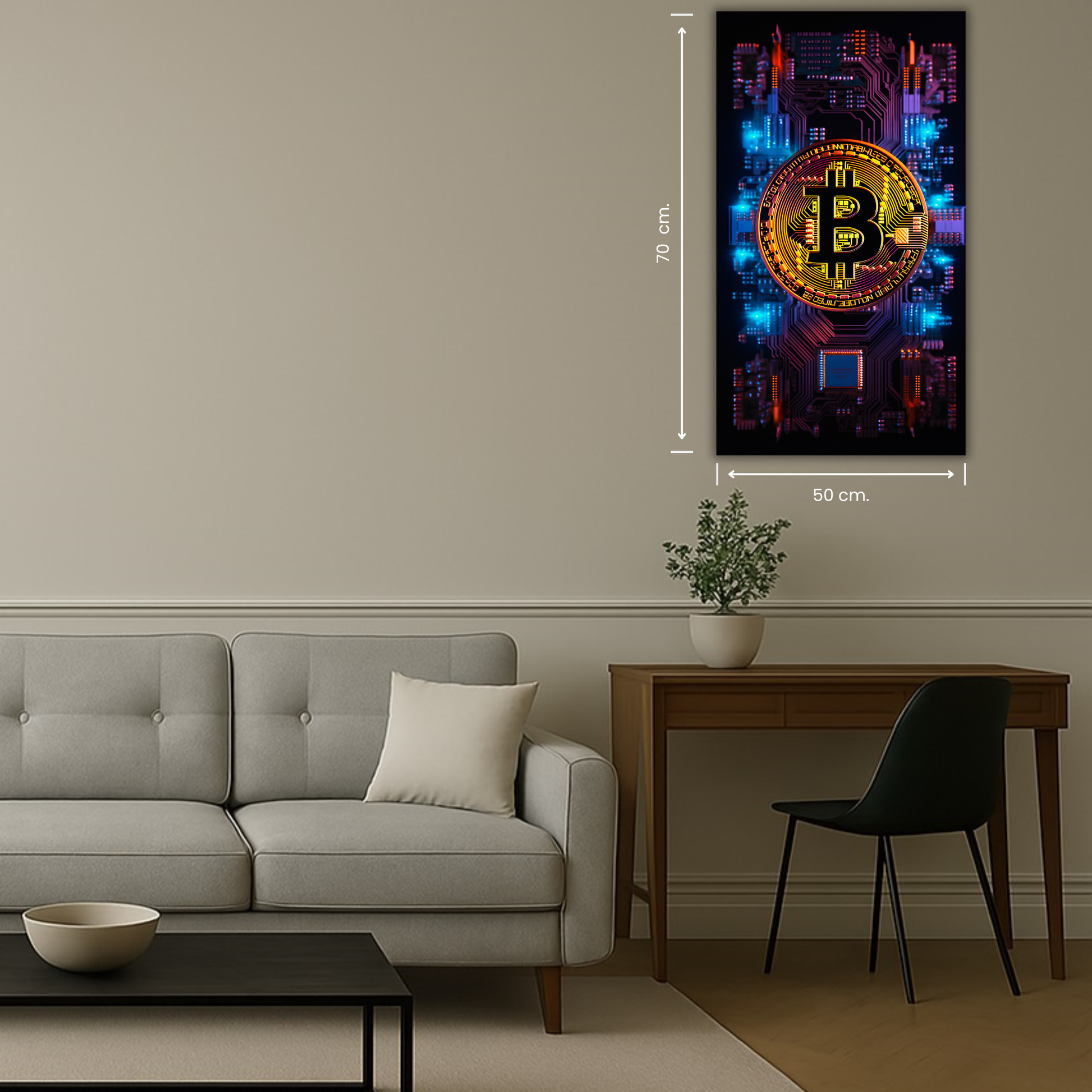 Un tableau Bitcoin or moderne qui apporte caractère et élégance à votre décoration intérieure.